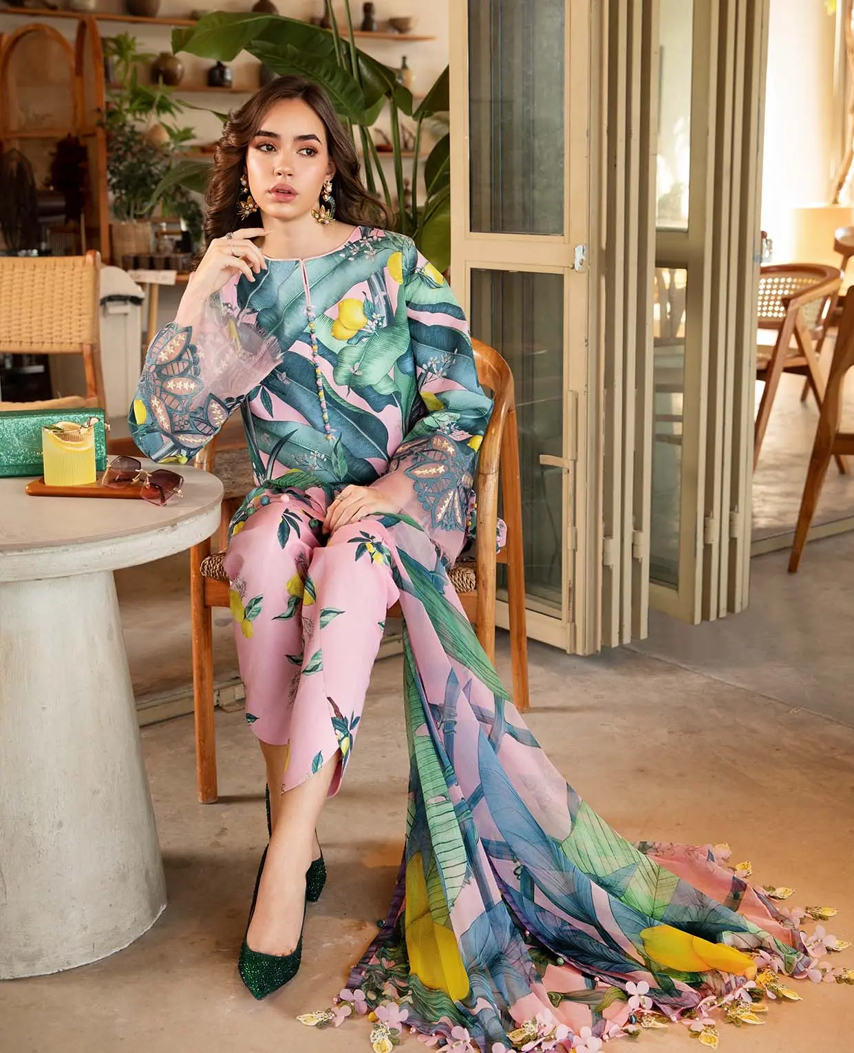 UMM E TAHA Brand/Stitched 2PC KT Green Pink Floral