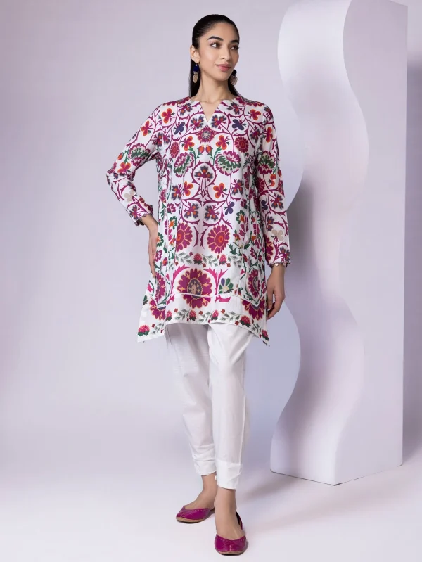 WHITE WITH MULTI FLORAL DESIGN KURTA