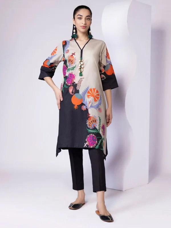 UMM E TAHA Brand/Stitched 1PC K Grey Floral