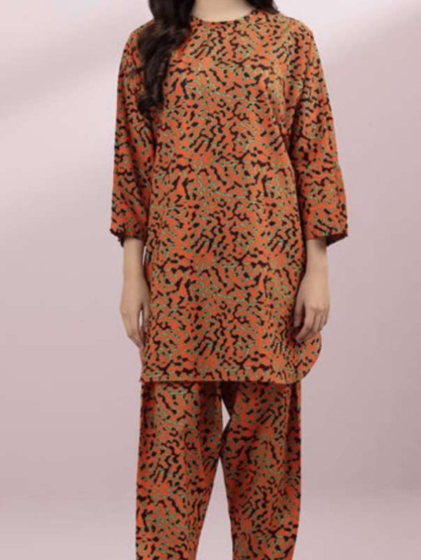UMM E TAHA Brand/Stitched 1PC K Orange Printed