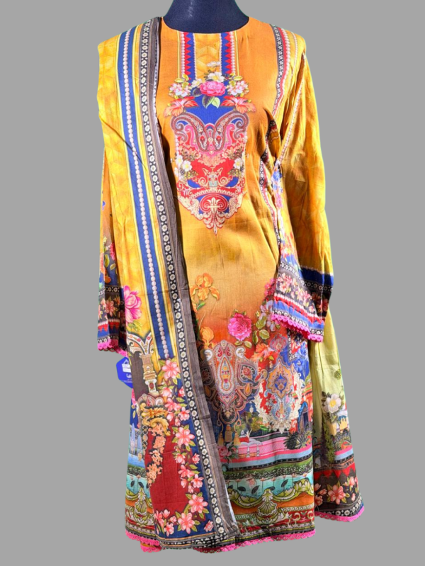 UMM E TAHA Brand/Stitched 1PC K Mustard Multi